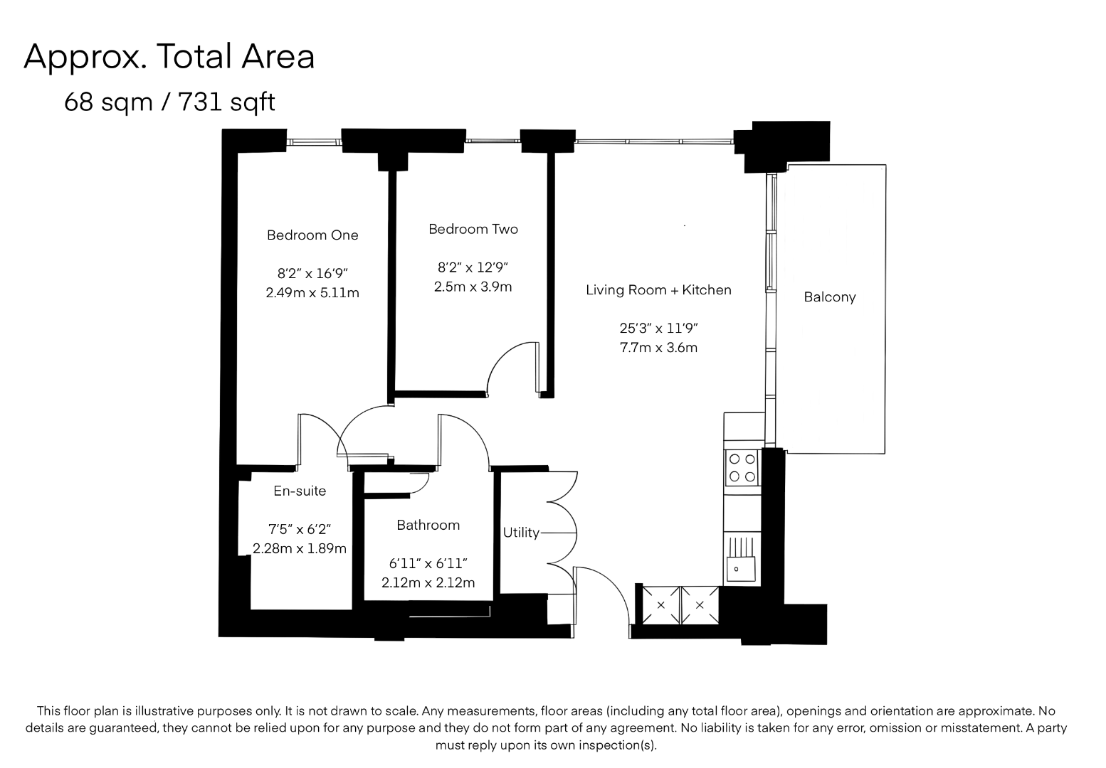 The property is reached by lift and features a welcoming entrance hall with storage and a utility room. The heart of the home is a large open-plan living room and kitchen with floor-to-ceiling windows that fill the space with natural light and enjoy lovely dual aspect views. This area opens onto a generous private balcony, ideal for relaxing outdoors.