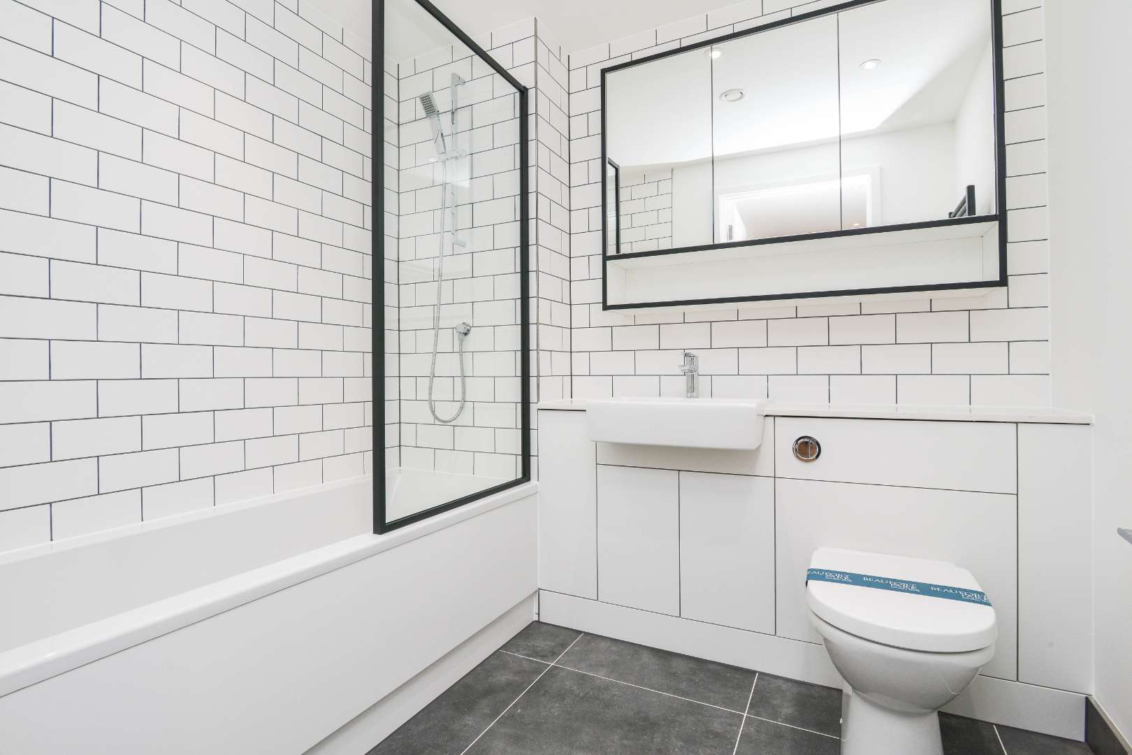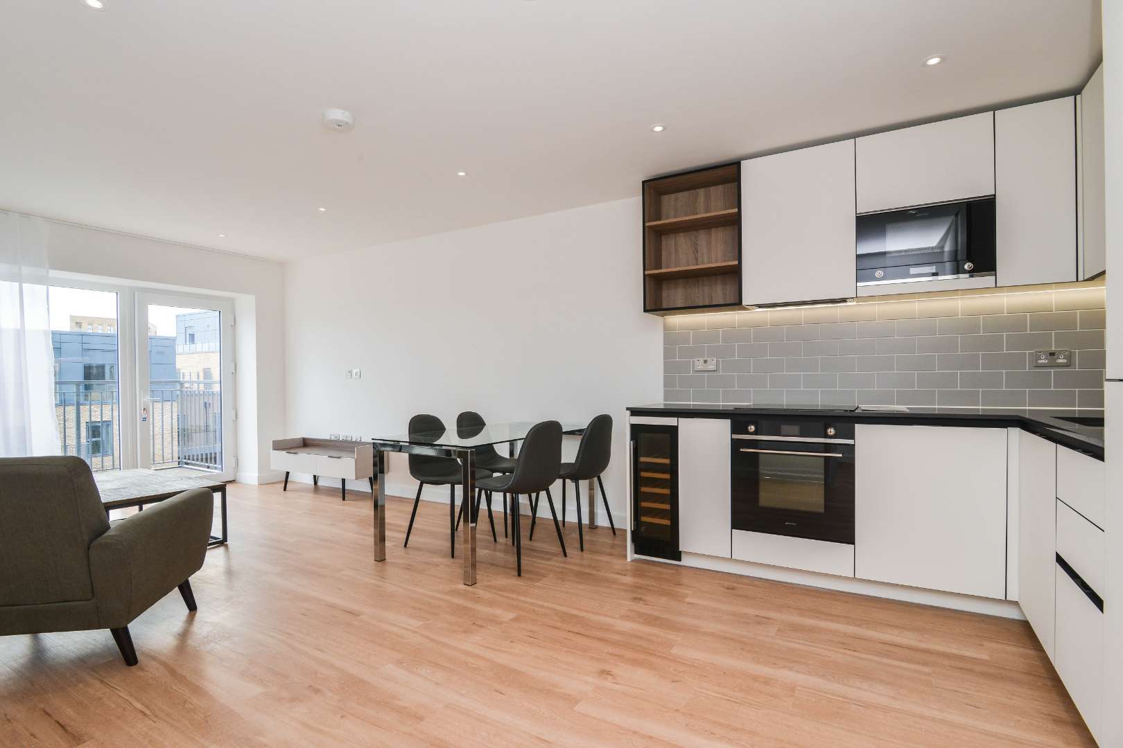 An opportunity to rent a wonderful two double bedroom, two bathroom apartment in the recently built Fermont House in the St George development, Beaufort Park. The apartment is on the 7th floor and offers lovely views across the roof tops and down to the residents garden below. There is a private south facing balcony and the apartment is bathed in natural light. The property has a high quality internal finish with a stunning open plan, integrated kitchen, high quality bathrooms and there is engineered wood flooring in the living space and luxurious carpet in both bedrooms. Included with this apartment is secure underground parking.