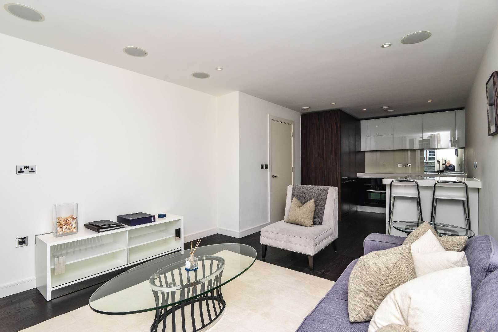 This charming one-bedroom apartment on the third floor of the sought-after Grosvenor Waterside development offers well-proportioned spaces, plenty of storage, and high-quality finishes. It features solid wood floors, a sleek integrated kitchen with an island dining area, a stylish bathroom, a generously sized bedroom with built-in wardrobes, and a spacious reception room. Both the bedroom and reception benefit from floor-to-ceiling windows and Juliet balconies. Residents enjoy access to a gym, spa, on-site restaurant and café, and the convenience of a recently opened Sainsbury’s. The location is ideal, close to Sloane Square, The King’s Road, Victoria, the Thames, and the green expanse of Battersea Park.