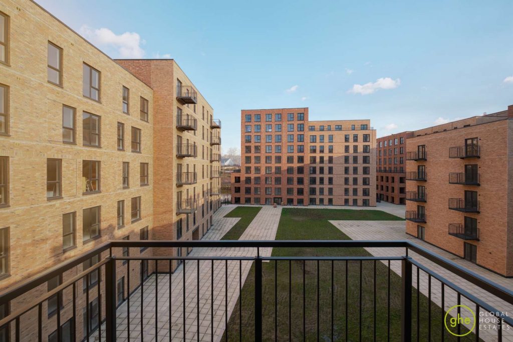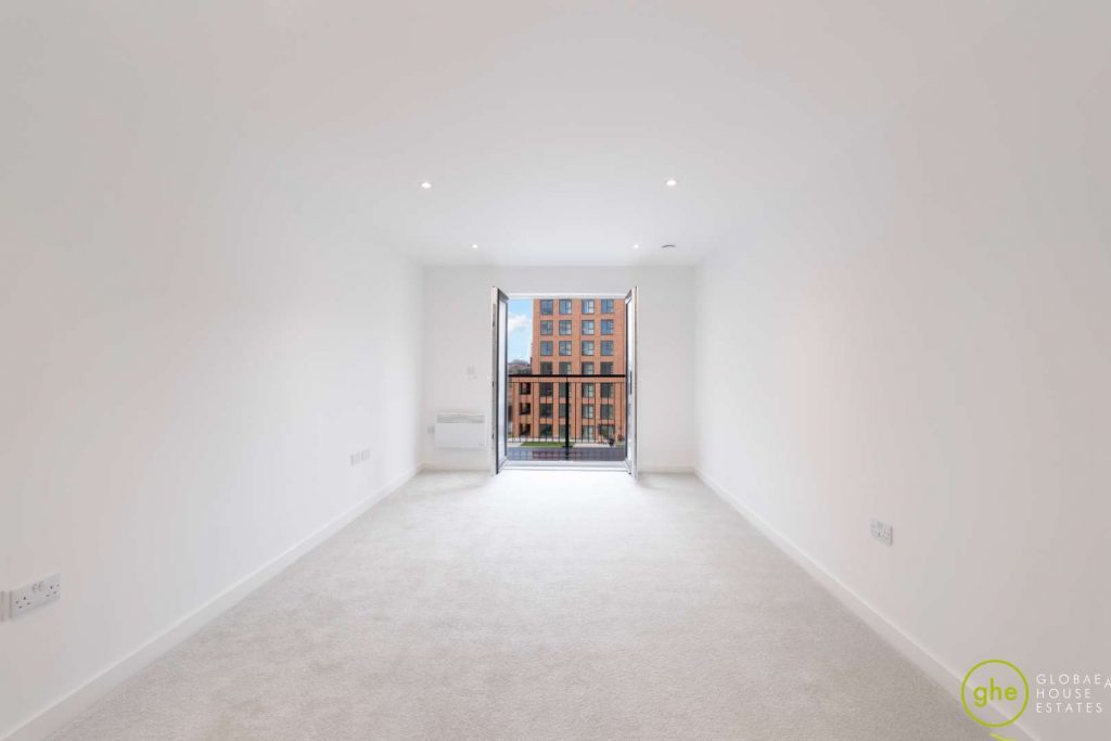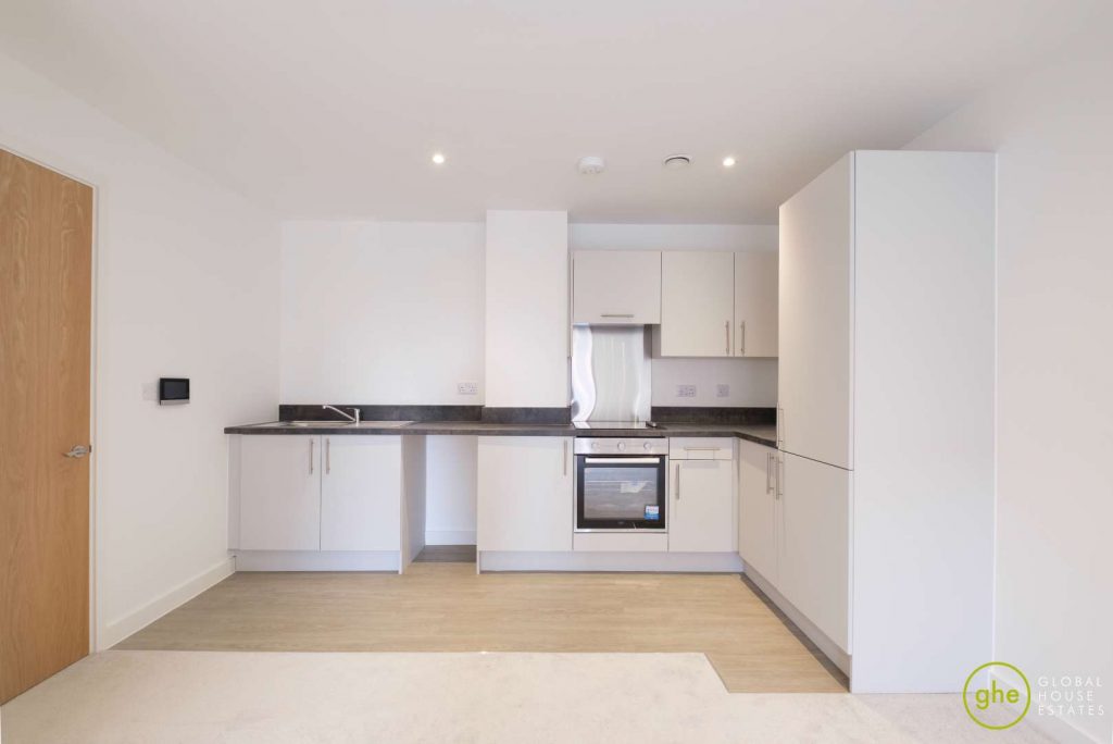 The heart of the home is the open-plan kitchen and living space, which provides direct access to the private balcony. The kitchen is fully fitted with integrated appliances. Both bedrooms are well-proportioned doubles, served by a stylish, contemporary family bathroom with premium tiling.